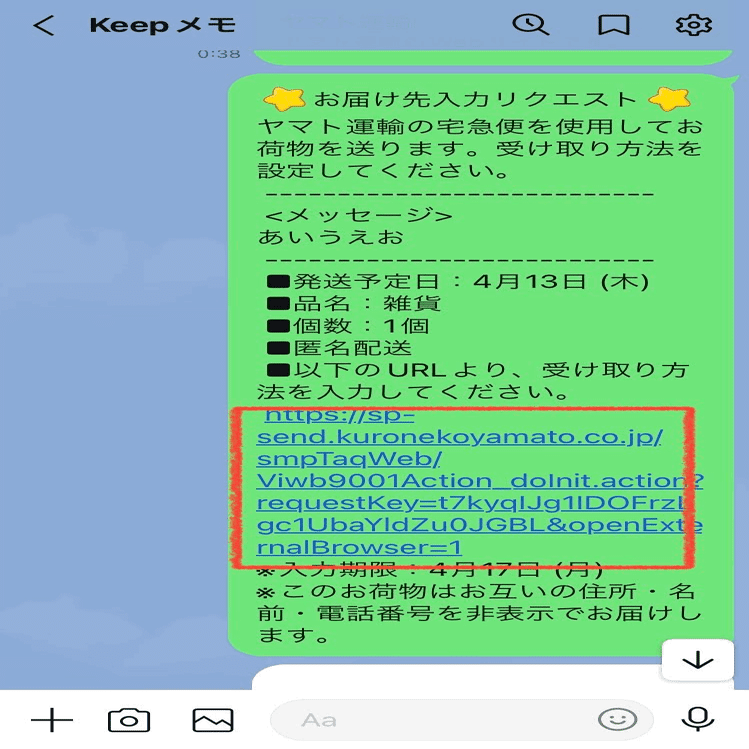 ※つづけて、相手にURLが匿名発送の手続きである旨を伝えると良い。