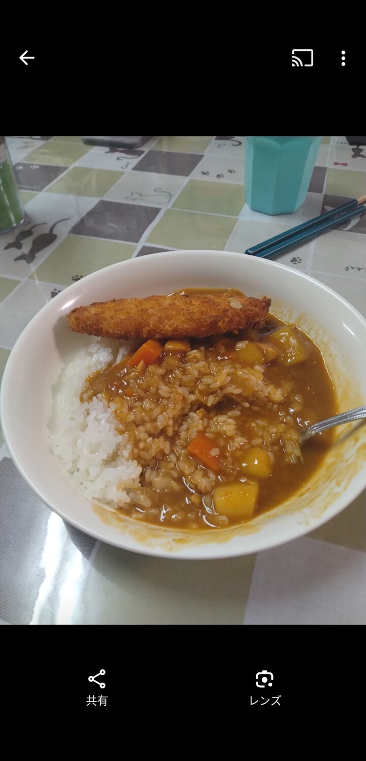 チ…ーズ… カレーとまぜまぜしてやねえ