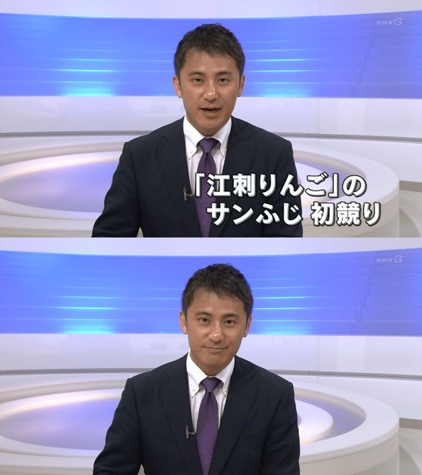 130418_☆解説 上着に隠れて見えにくいんだけどどうもリンゴネクタイつけてるっぽい pic.twitter.com/twFEe0QI7w