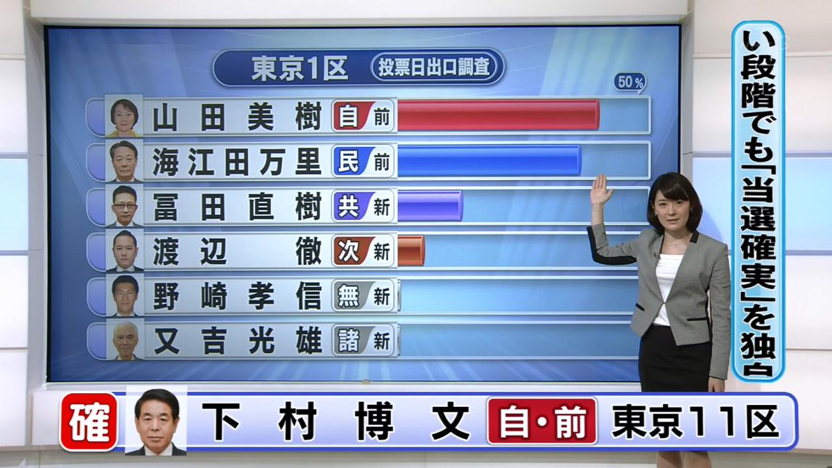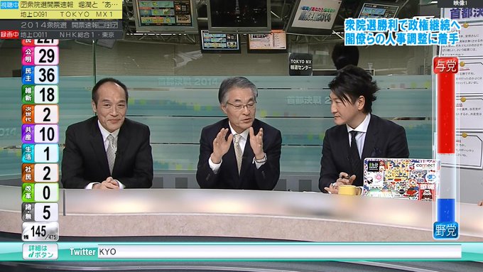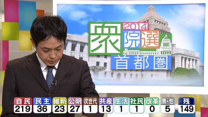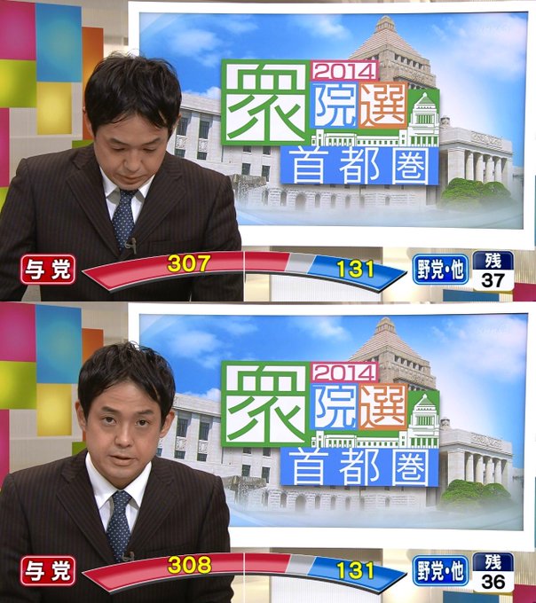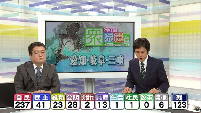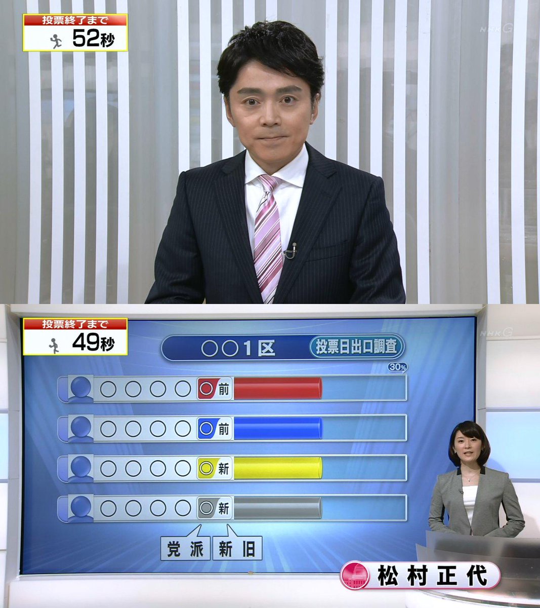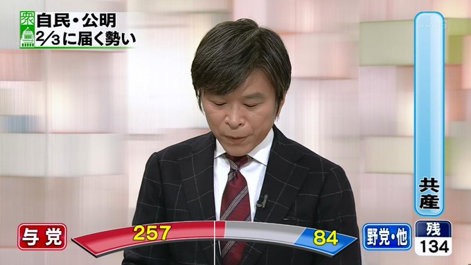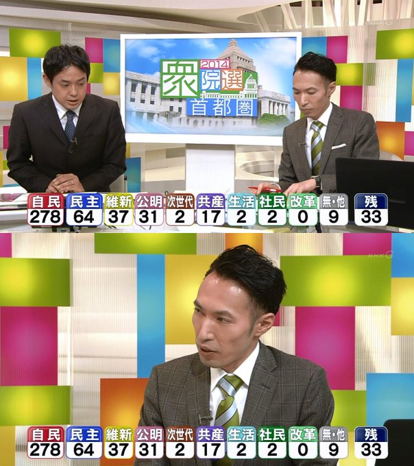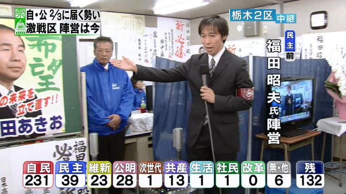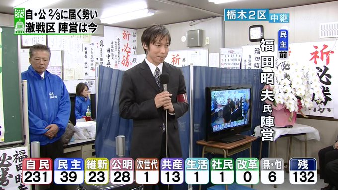 開票状況を受けた各地のアナウンサーらの反応についても動画を掲載してください