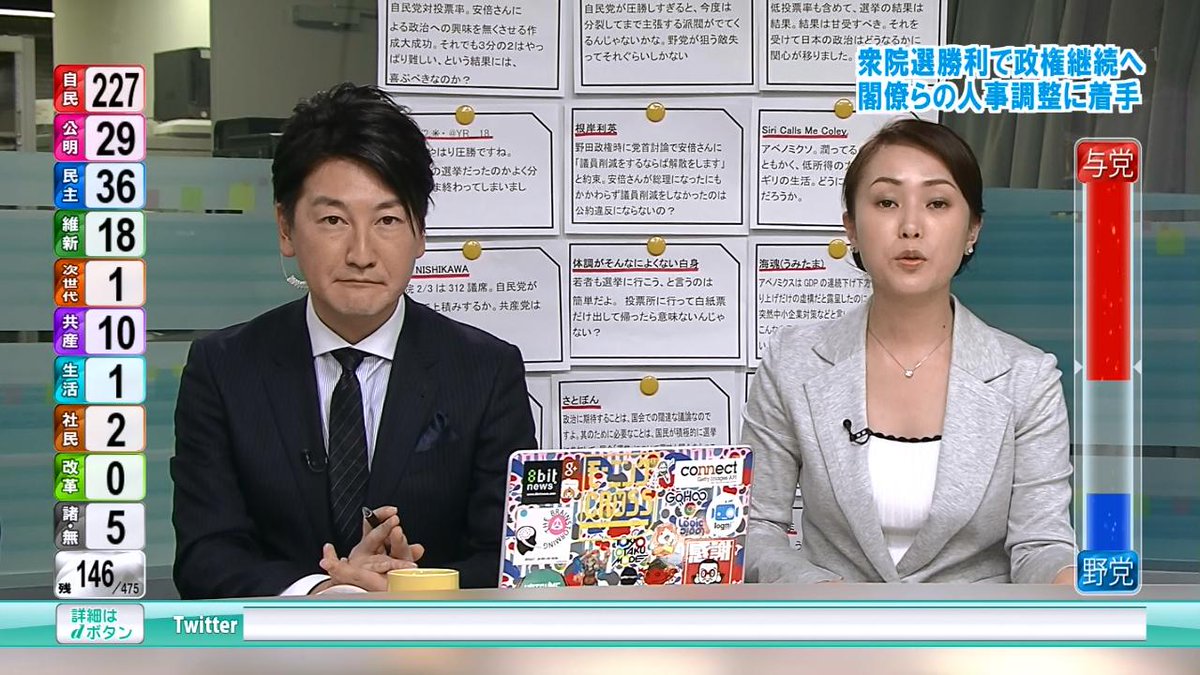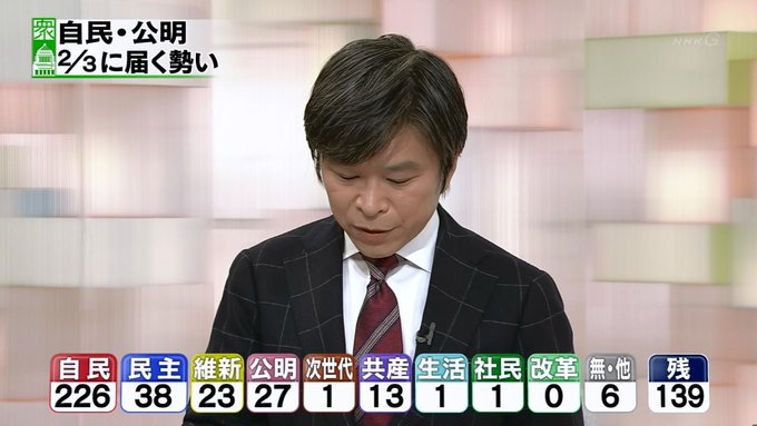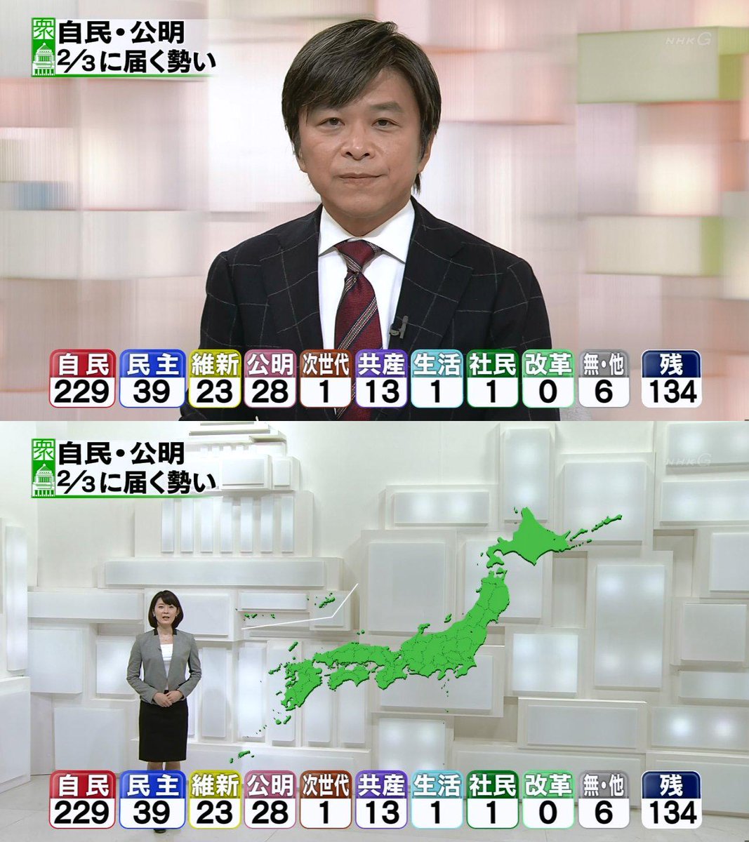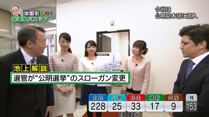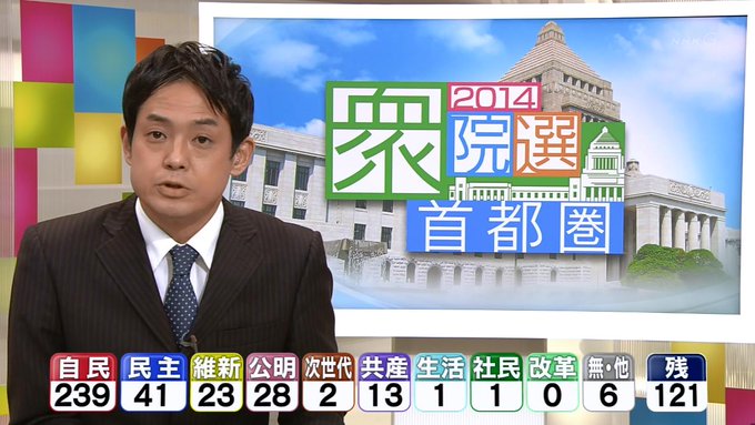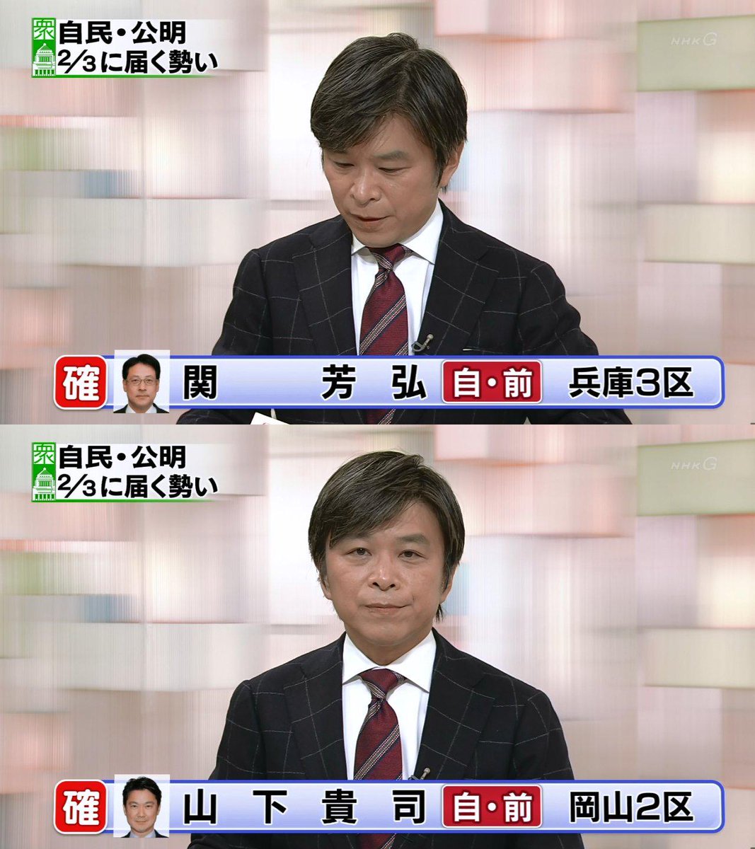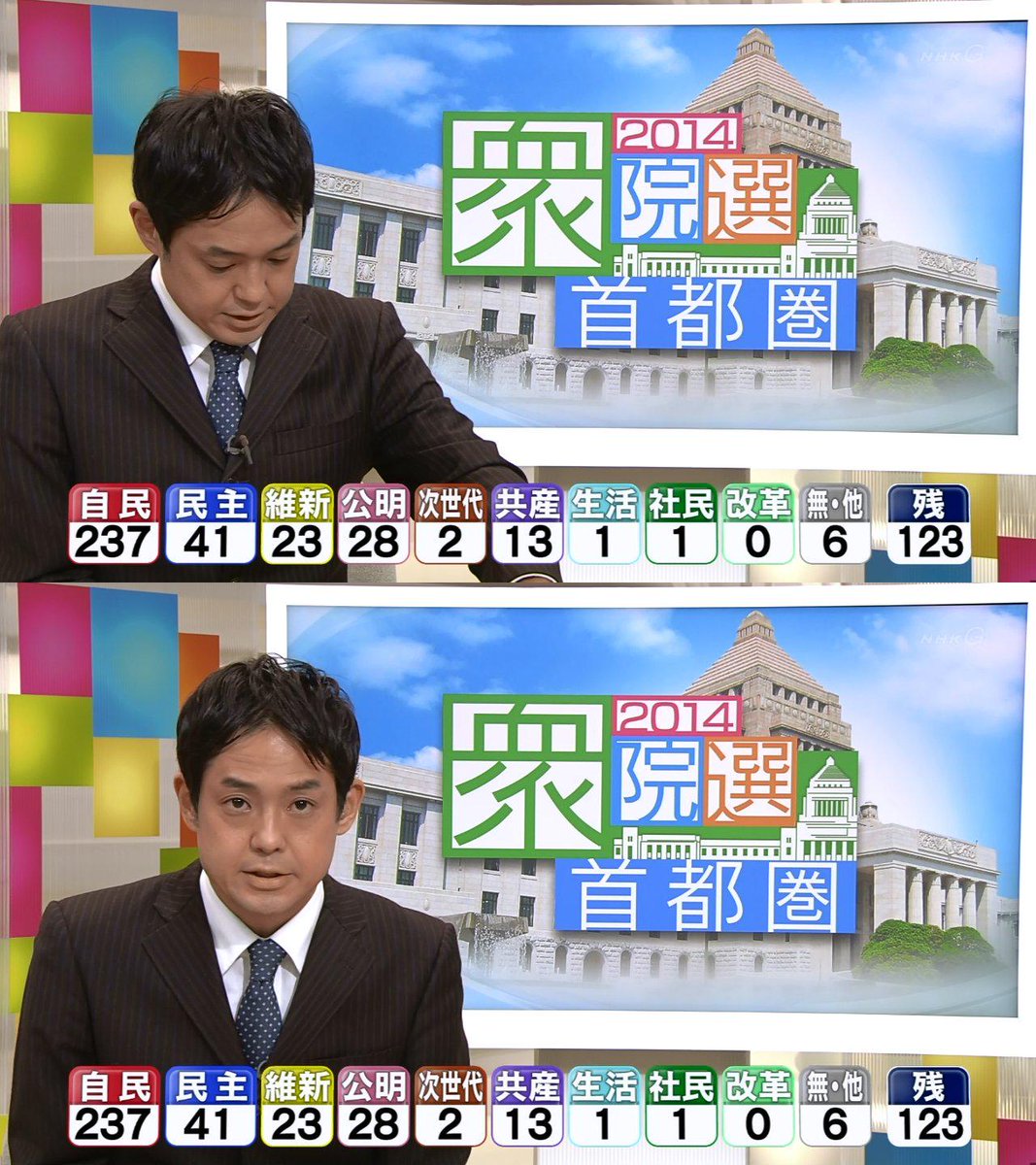 開票状況を受けた各地のアナウンサーらの反応についても動画を掲載してください