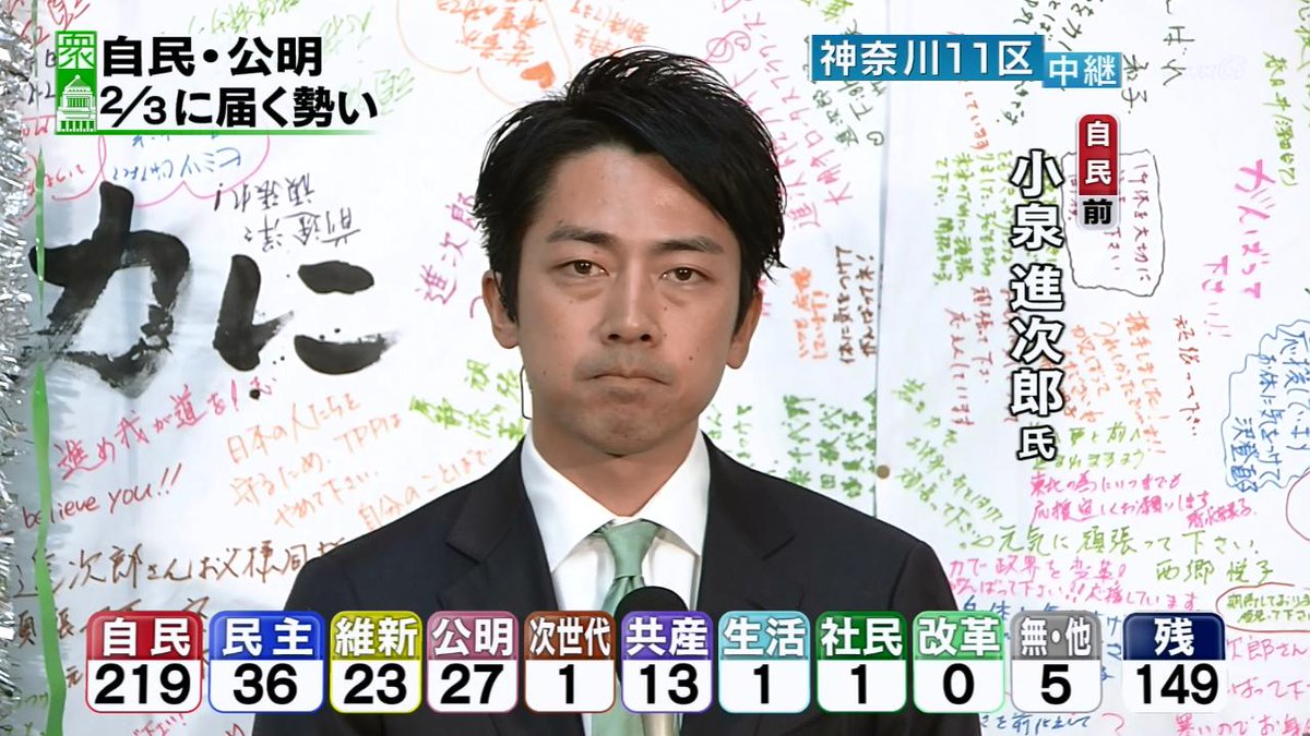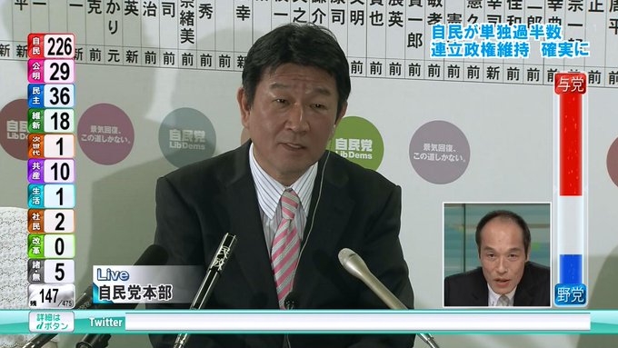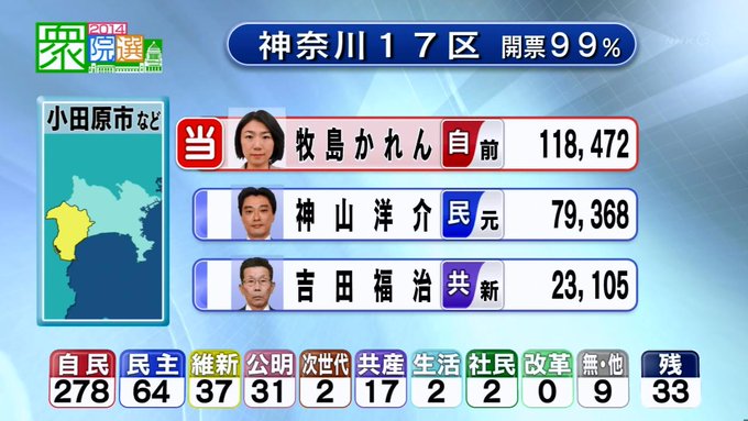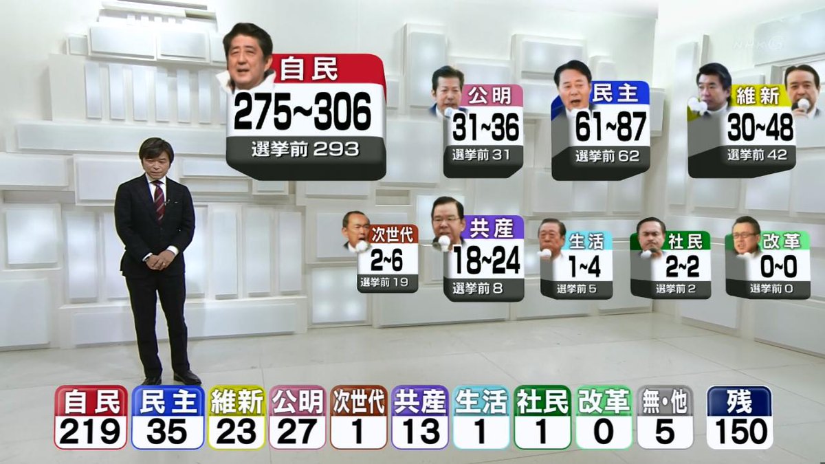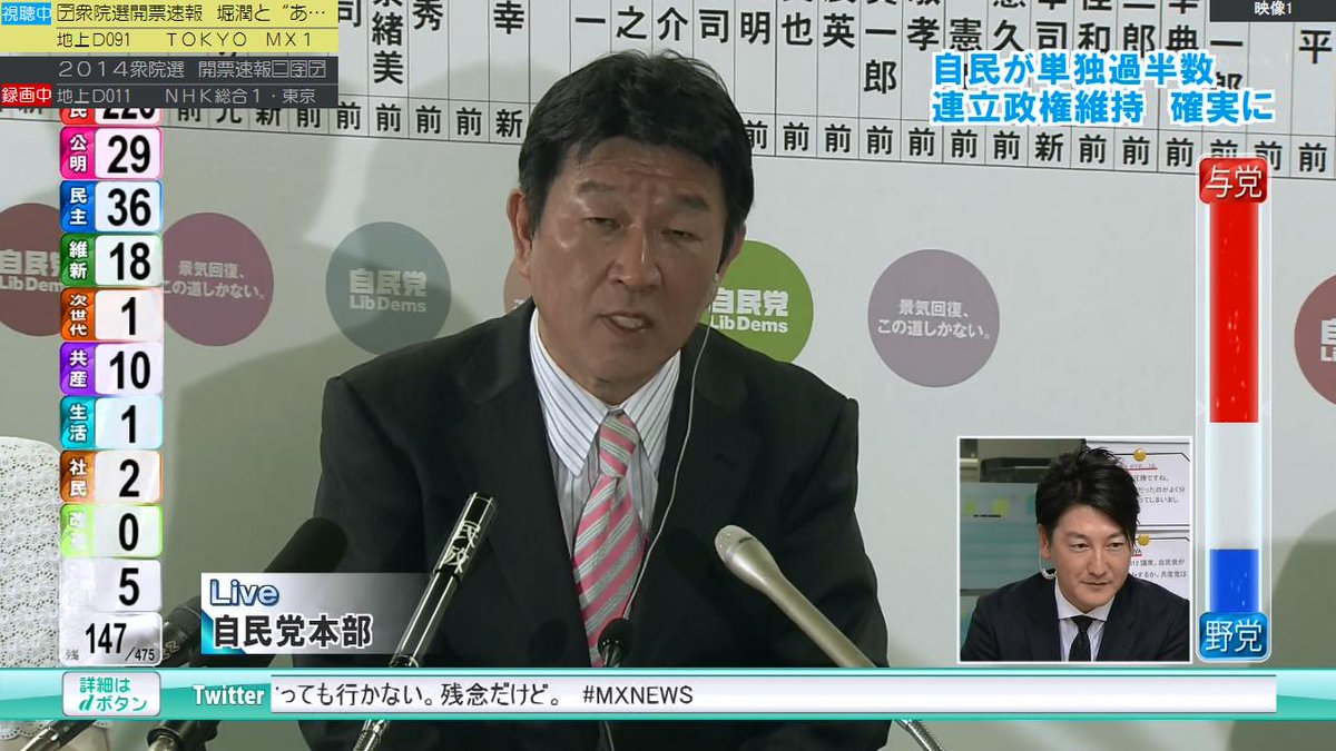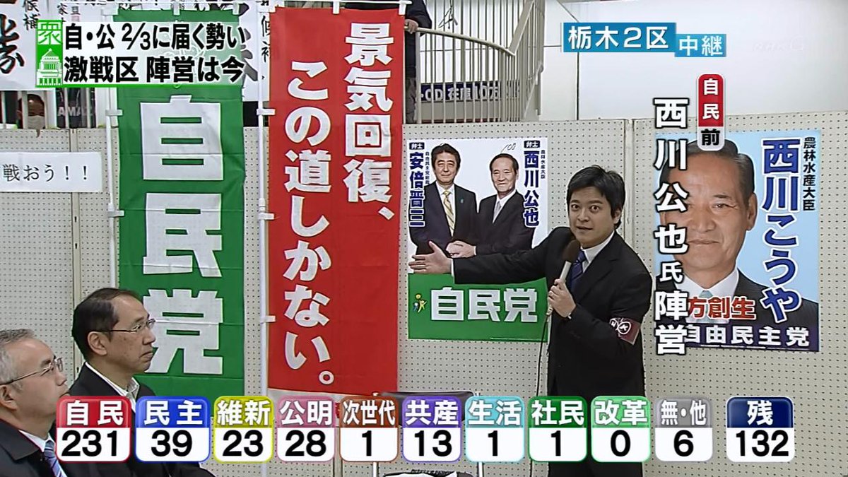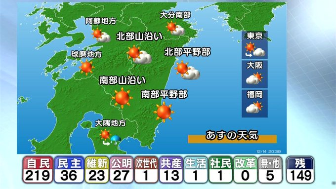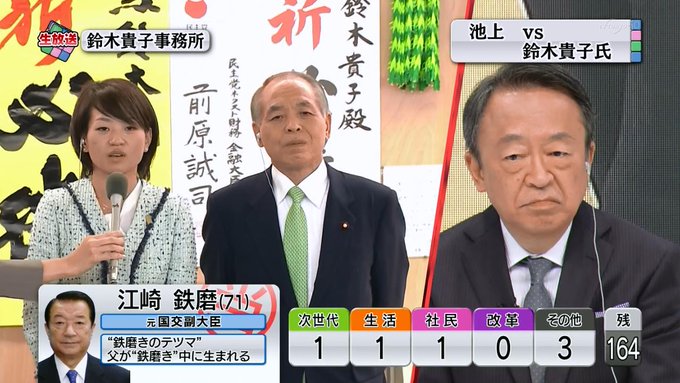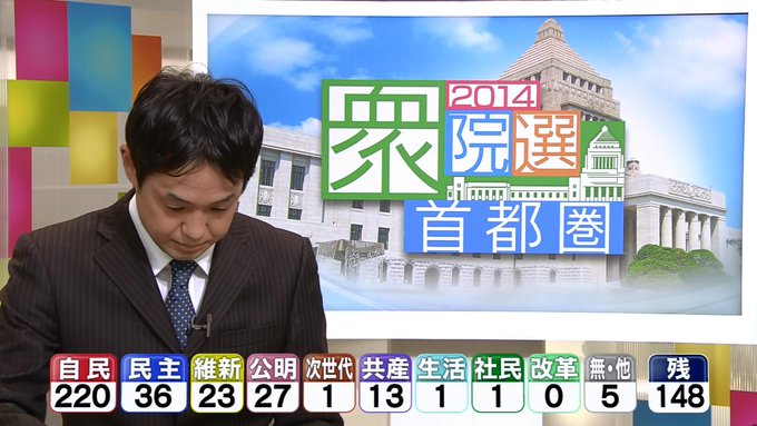 開票状況を受けた各地のアナウンサーらの反応についても動画を掲載してください