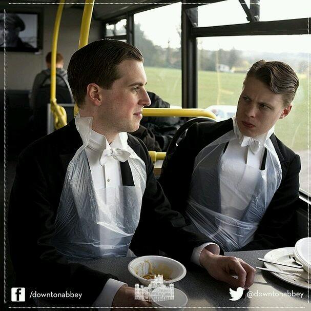 食事中衣装を汚さないようにビニール巻き巻きの使用人君たちがえらく美形なダウントンアビーの贅沢さについて。 pic.twitter.com/HVS9WFPWqu