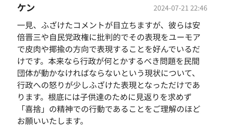 NPOに難癖つけるよりは寄付でもした方がええやん - 54二次元好きの匿名さん24/07/22(月) 11:24:33