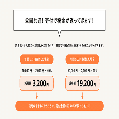 ひ「まず認定NPO法人への寄付金は、寄付金控除の対象になる。最大で所得の40%まで、寄付した金額のほぼ全額(-2000円)が控除されるんだ。または次の算式で計算した金額について税額控除の適用を受けるか、いずれか有利な方を選択することができる。この若者おうえん基金っていうページの説明を借りるね」