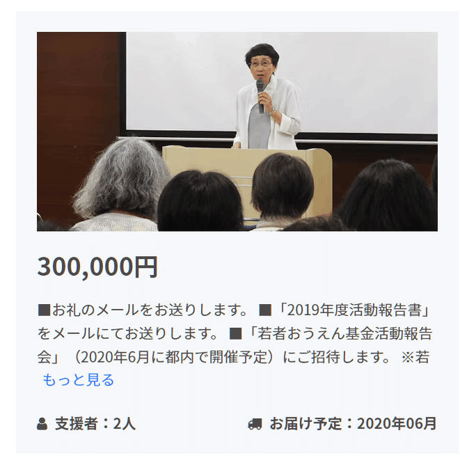 ひ「では認定NPO法人に寄付したお金の行き先については例を出して説明しよう。この若者おうえん基金というクラファンがある。さっき例にだしたね」