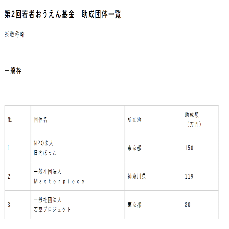 ひ「額こそすくないけど第二回第四回では若草プロジェクトが助成先に選ばれてるし」