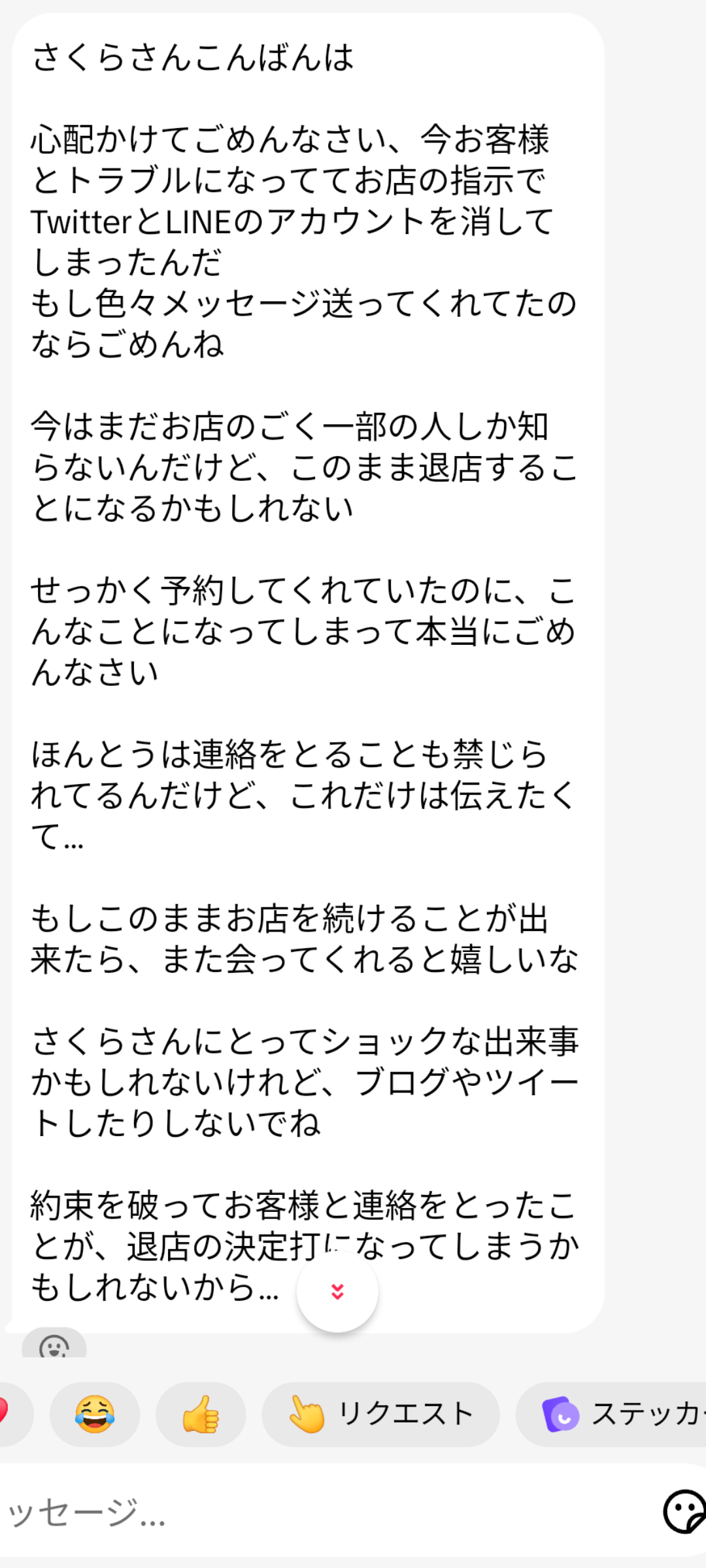 「さくらさんにとってショックな出来事」と書いてあるけども全くショック受けていない。