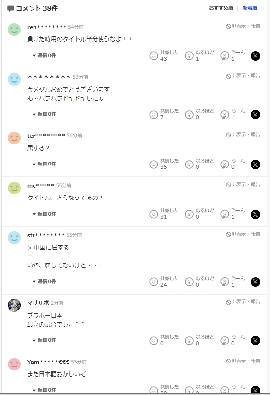 - 【パリ五輪】 韓国人「アーチェリー男子団体日韓戦で、韓国人選手が日本人選手に向かって激しく吠えまくって話題に‥」→「この表情はマジでヤバイ」