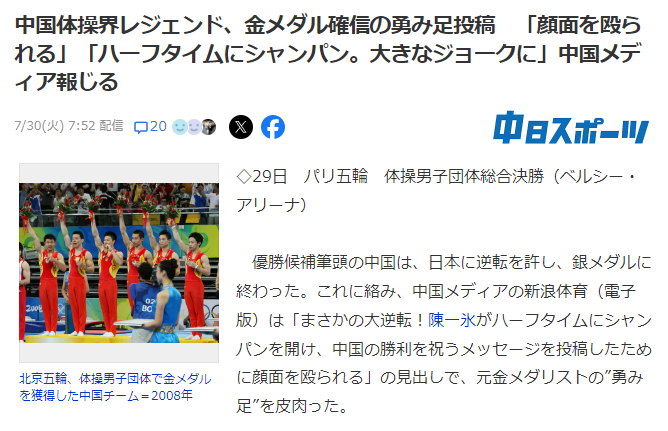 中国体操界レジェンド、金メダル確信し鉄棒の直前に『金メダルおめでとう』とシャンパンあける画像投稿- 校長「皆さんに残念なお話があります。今年の学園祭は先生が生徒会費を使い込んだので中止となります」