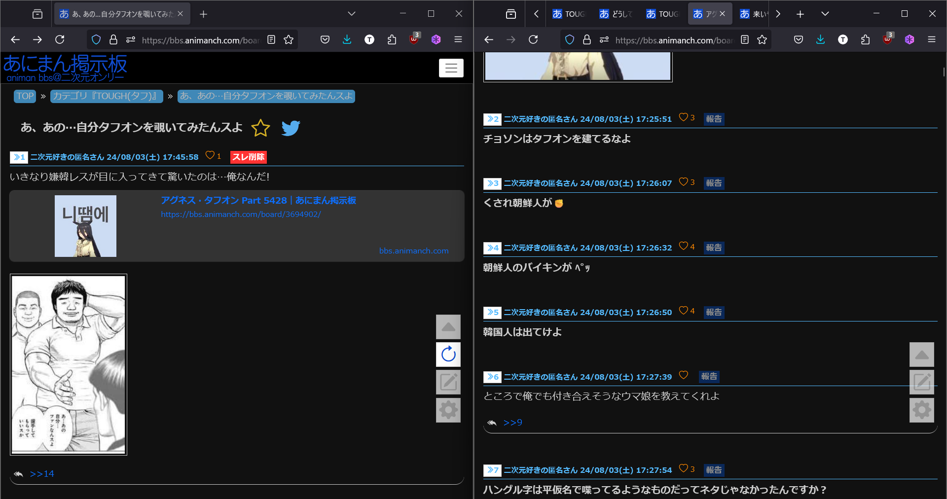 タフオンなんて絵師粘着も半コテへの粘着もウマカテ愚弄もなんでもござれヤンケ