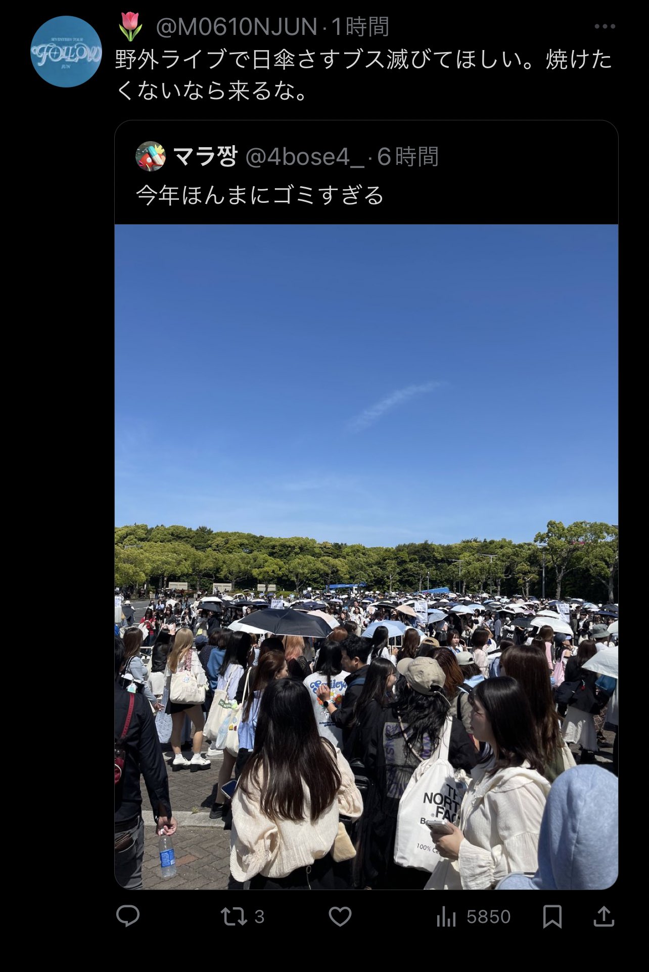 野外フェスはライブ中も日傘してんの?さすがにないよな?