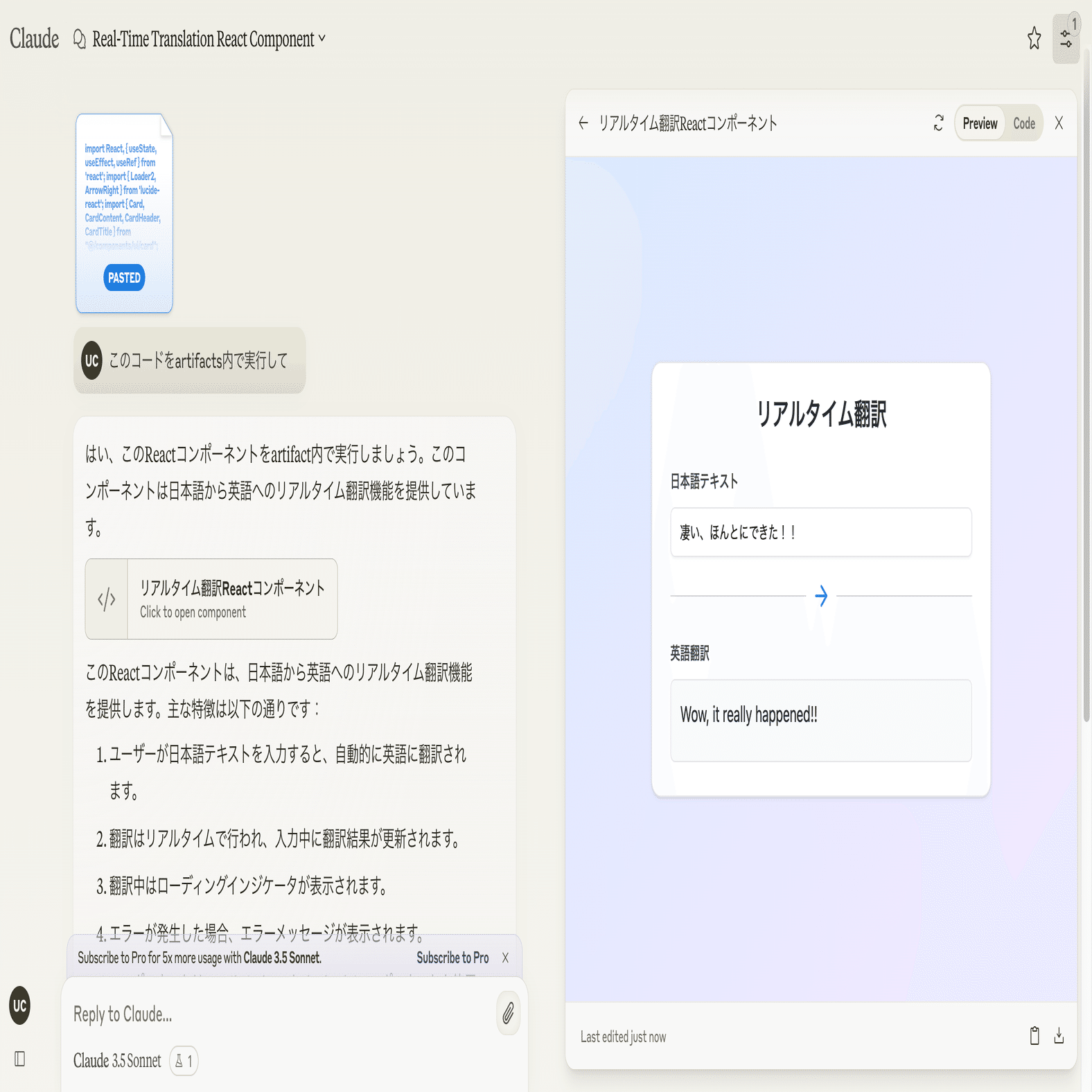 ClaudeのArtifacts内でGemini Nanoを使ってリアルタイム翻訳アプリを実行方法を解説します。コード付きです。