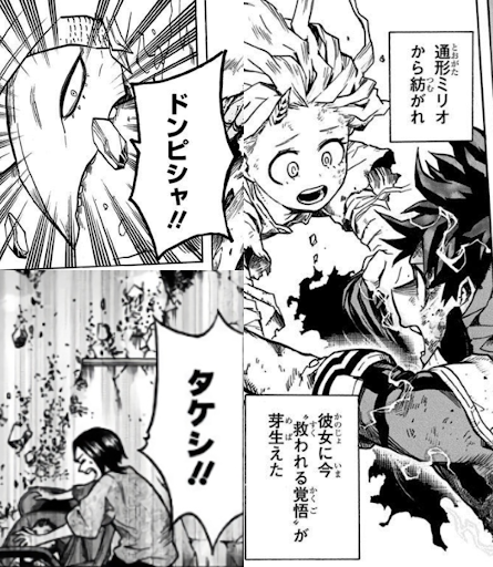 ミリオがやけに及び腰なのはなんだったんスかね。お前に超有利で大得意なシチュエーションすぎるだろうがよえーっ!デクボーにエリちゃん連れてかせて殺す…したオバホを失神KOしろって思ったね。全身包帯まみれの怯え倒してるガキっとか保護するしかないやんけ