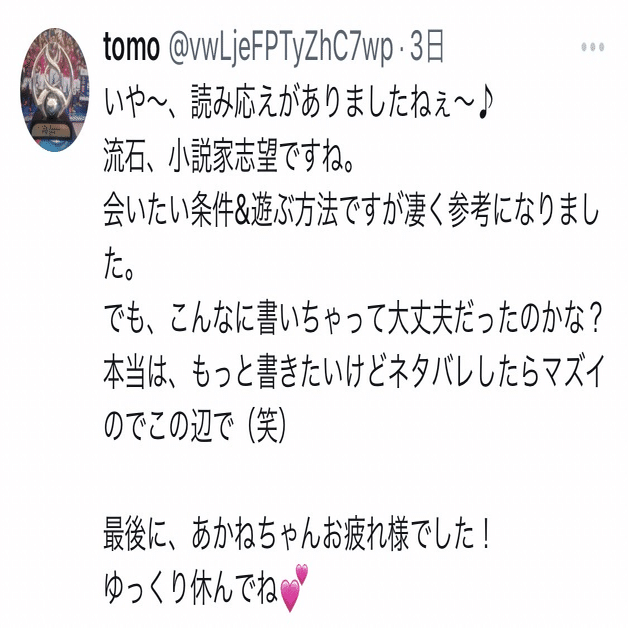 本当に嬉しい感想をいただき、、、