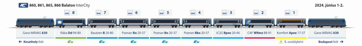| Vastagcsíkos gyorsvonat | alapszerelvény | Ad 19-30 + 3 Bd 20-37 + Dd 94-80 | Alapszerelvény | Ad 19-30 + 3 Bd 20-37 + Dd 94-80 | Telikék személyvonat |