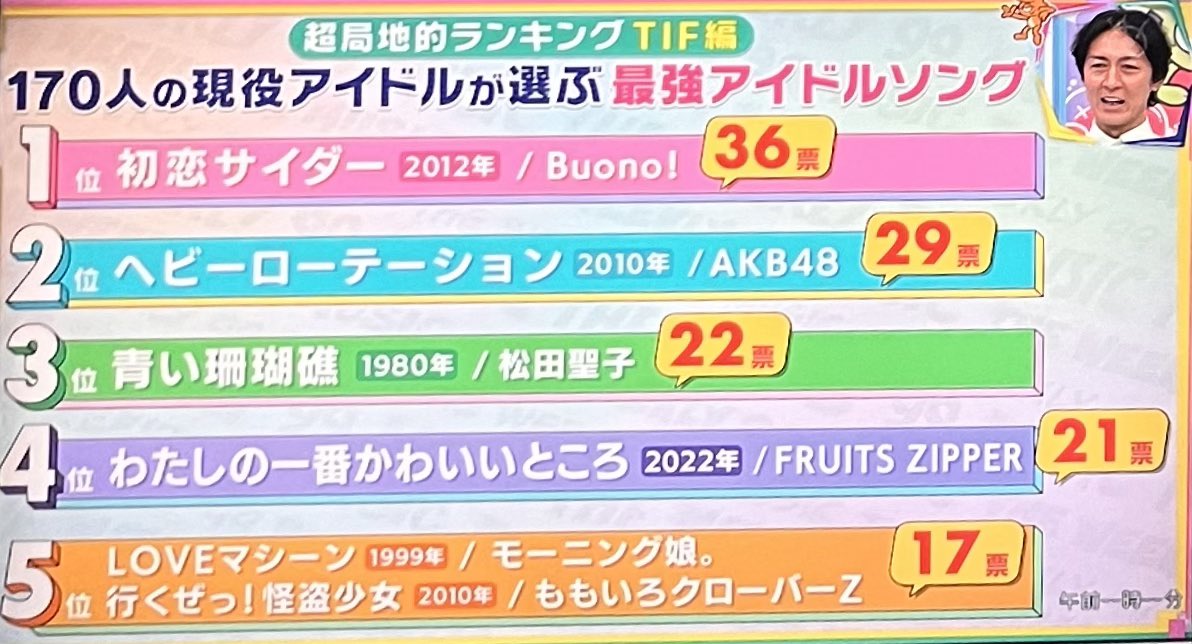 そもそもこのランキングは超局地的ランキングでアイドルだけの投票なんだから