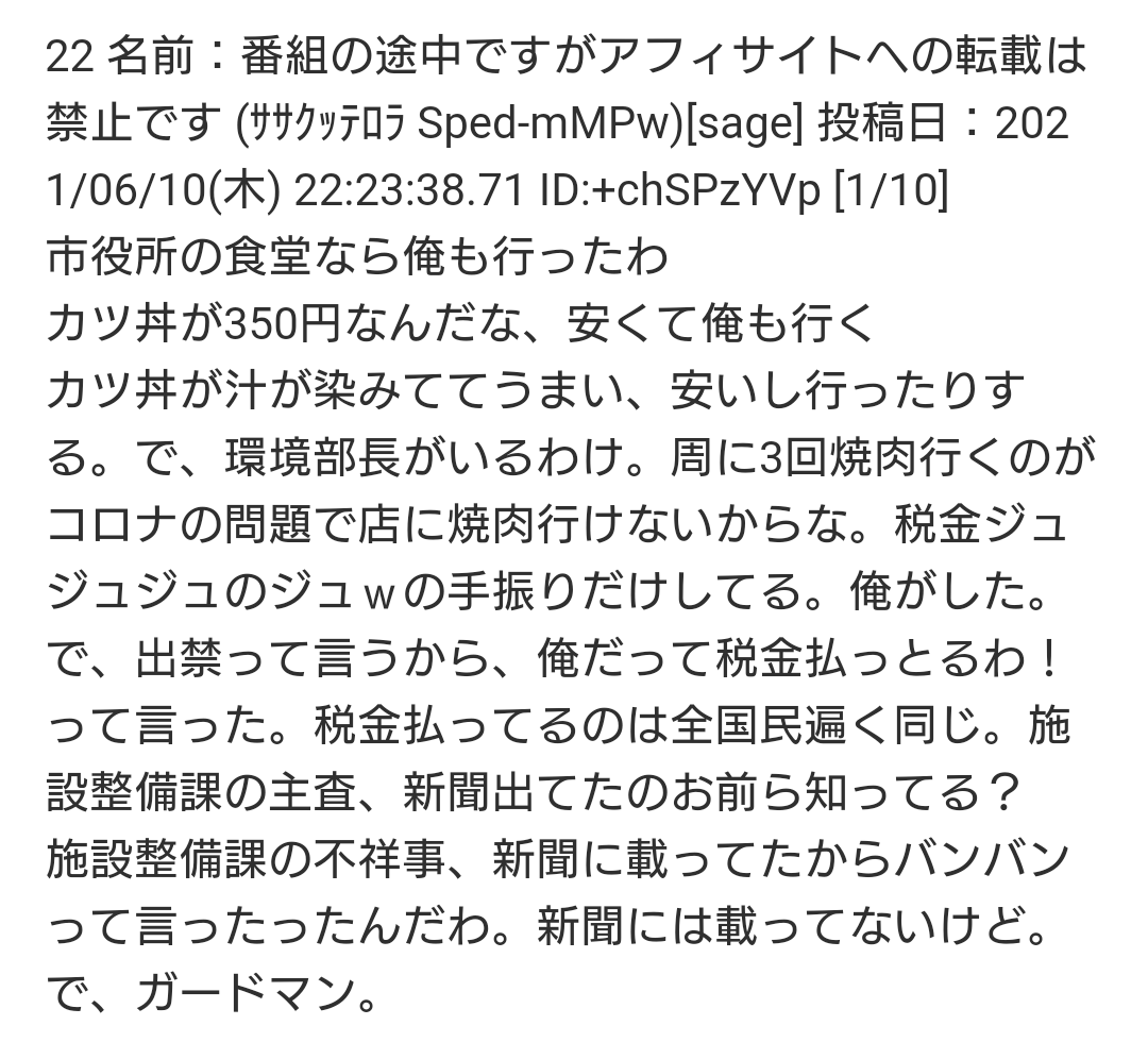 (腹が立ったから)「(市役所の)施設整備課の主査、(不祥事起こして)新聞出てたのお前ら知ってる?
