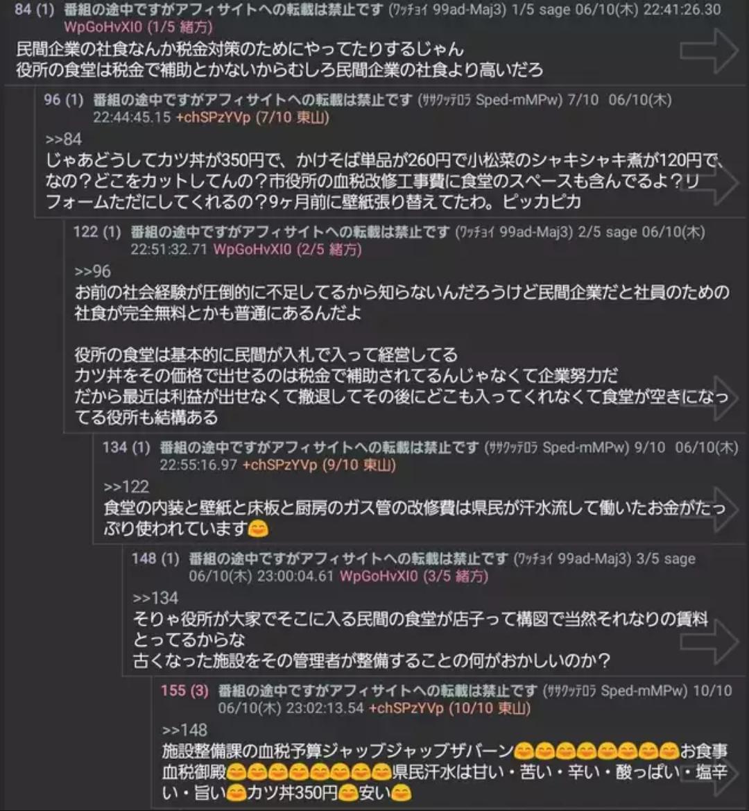 で、(今日は珍しく食堂に)環境部長がいるわけ。(普段は)週に3回焼肉行くのが、コロナの問題で(今は)店に焼肉行けないから(食堂に来てるんだ)な。