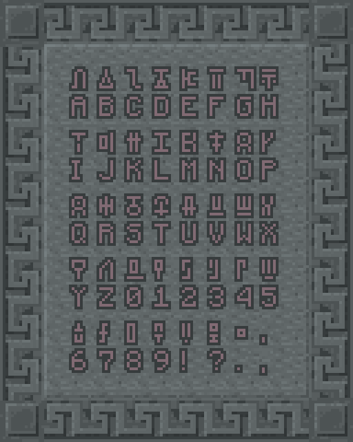 このフォントはMinecraft にも収録されており、JSONテキスト でのみ表示することができる。アルファベットの大文字・小文字と算用数字、!、?、,、.に対応しており、大文字と小文字には同じ字形が割り当てられている。