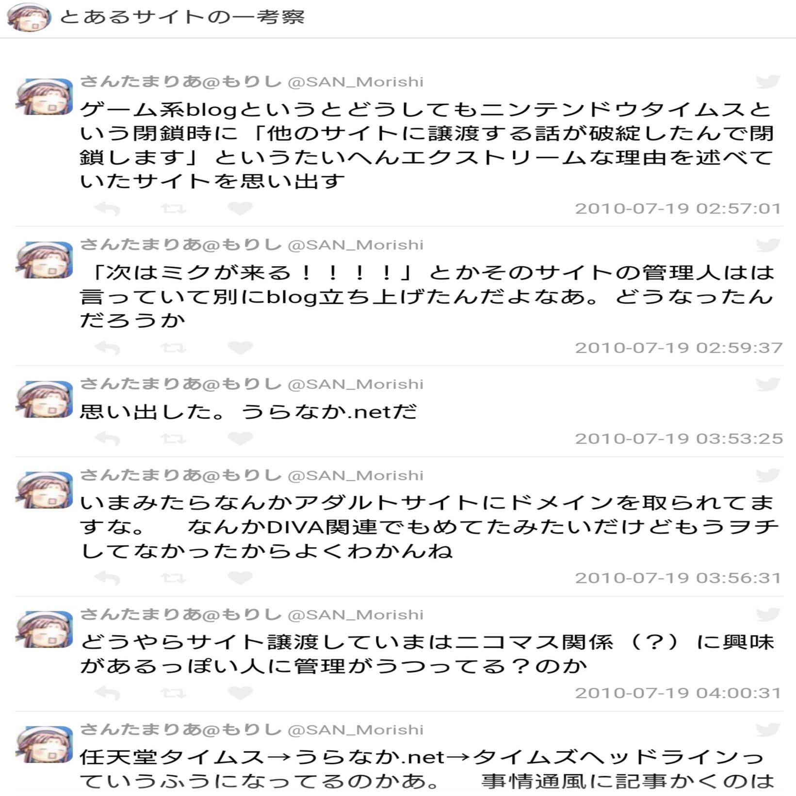 そしてこれは具体的な時期が調べられませんでしたが、この2009年3月末~6月(おそらく4月まで?)の間にうらなかは全てのインターネット活動から身を退き、引退したようです。