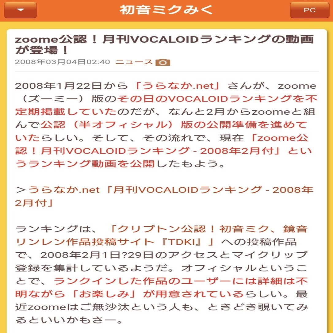 決して誤解してはいけませんが、うらなか.netによるランキング動画はzoomeの公認、正確にはzoome側でユーザーを増やすためのプロモーション活動の一環として行われていたボーカロイドを中心としたプロモーション、「TDKI(投稿動画向上委員会)」の公認であり、ランキング上位のボカロPにはzoome提供の景品が送られるなど、初音ミクの提供元であるクリプトンとは直接的な関わりはなかったようです。