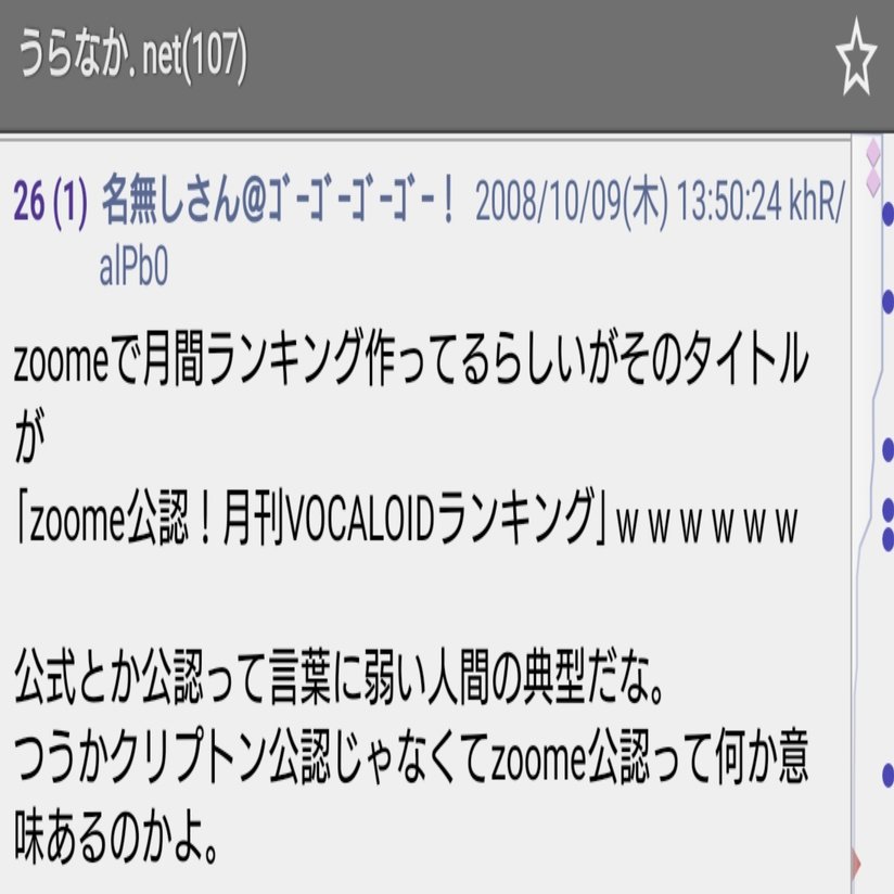 「うらなかがzoomeに与えた影響は多大のものであったがうらなかという存在は明かしたくない。詳細にも触れたくない。ただzoomeに勢いがなくなったのは全部うらなかのせいにしたい。」