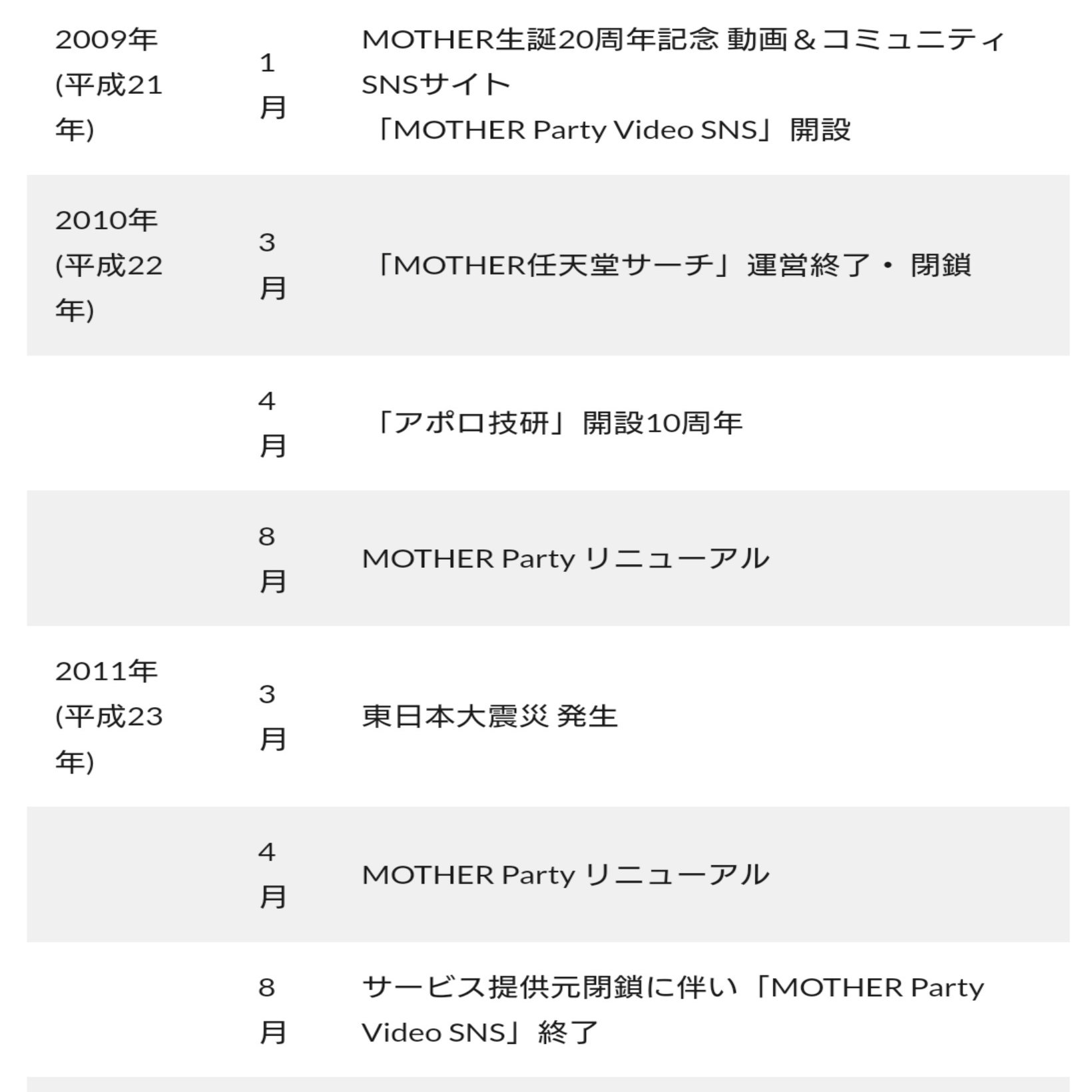 さらにこれも余談ではありますが、アポロ船長の運営しているMOTHER partyでもzoomeが開設されてから約二年後、自身のサービスである「MOTHER party Video SNS」(読む限りzoomeと同じような動画投稿できるSNS?)を開設しており、これも偶然かもしれませんがzoomeのサービスを終了する2011年8月と全く同時期にMOTHER partyもzoomeの閉鎖と関係あるかどうかはわかりませんがサービス提供元の閉鎖によりサービスを終了しています。