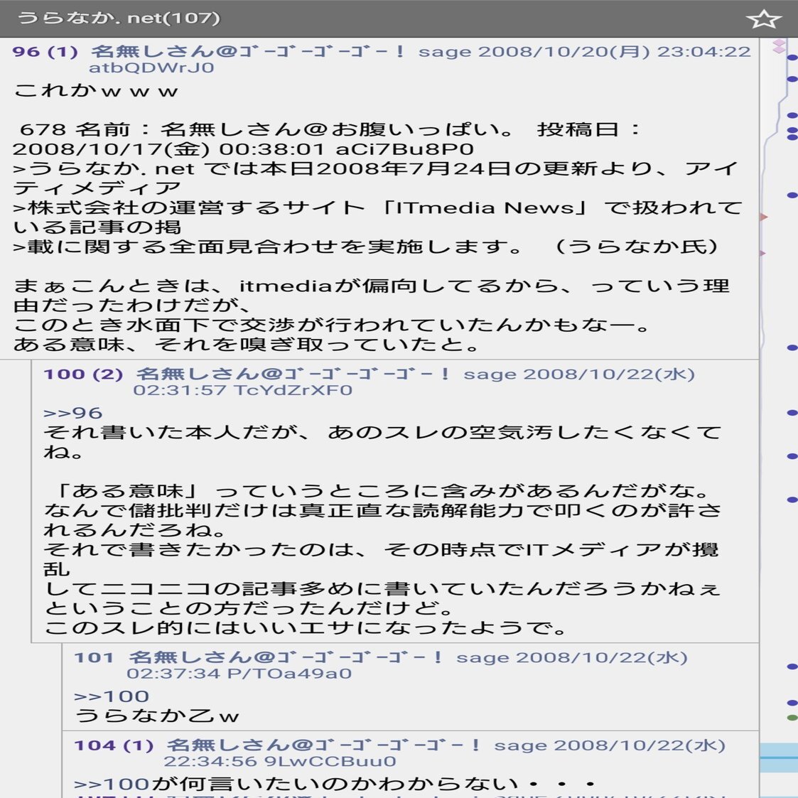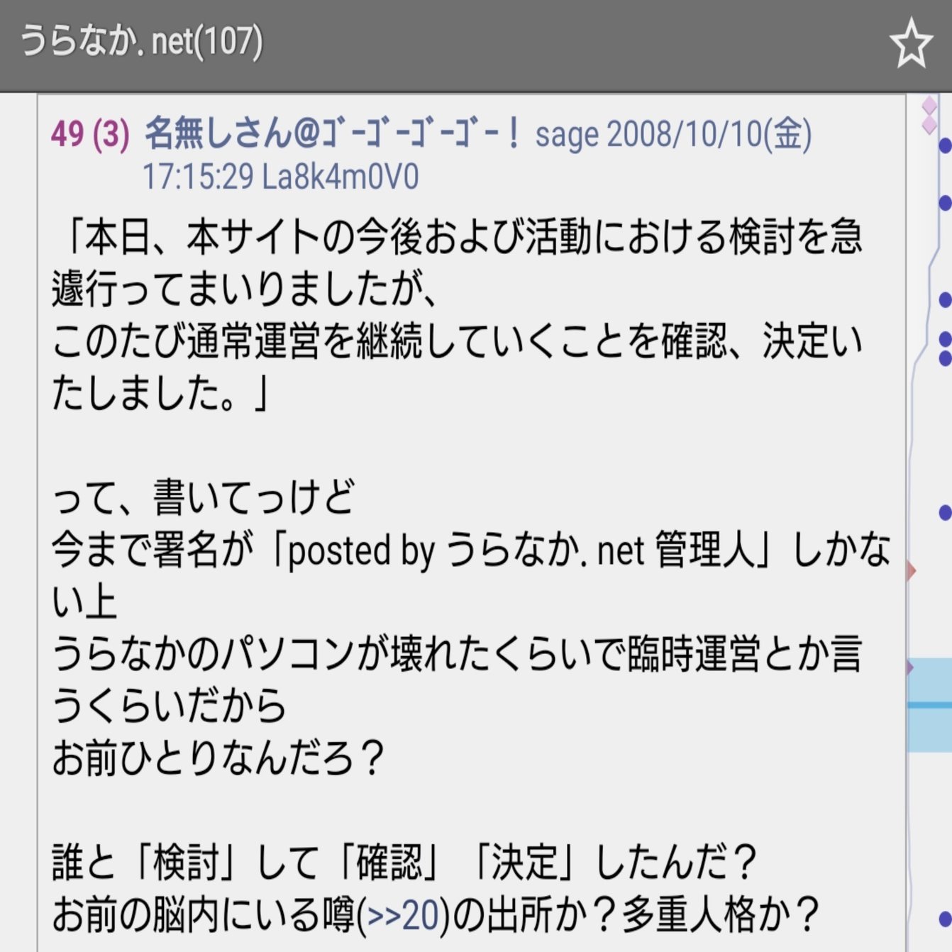 ただ、このうらなか.netの管理人うらなかはかなり強弁を張り過激な言動を行う人物だったらしく、当時の匿名掲示板2ch(現5ch)ではうらなか.netの専用スレッドが立っています。