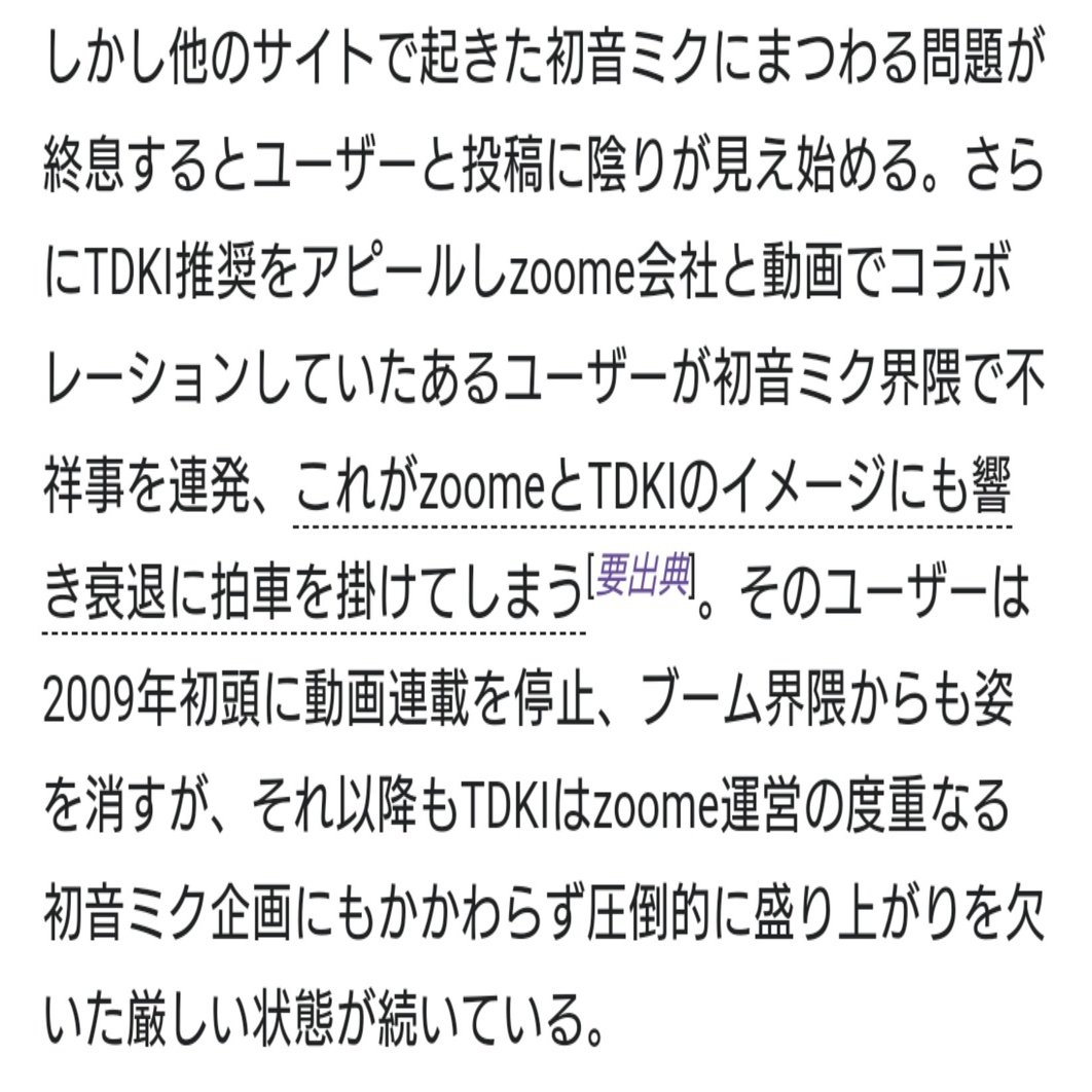 ただそうした中でも先述したとおりzoomeのWikipediaには今現時点でも確認できる不自然な記述があったため改めてその部分を抜粋して紹介したいと思います。