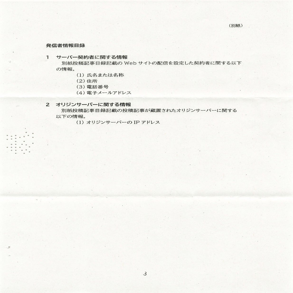 「Cloudflare, Inc.は対象となる投稿記事が蔵置されたサーバーの契約者に関する情報およびオリジンサーバーに関する情報を開示せよ」との決定を求める