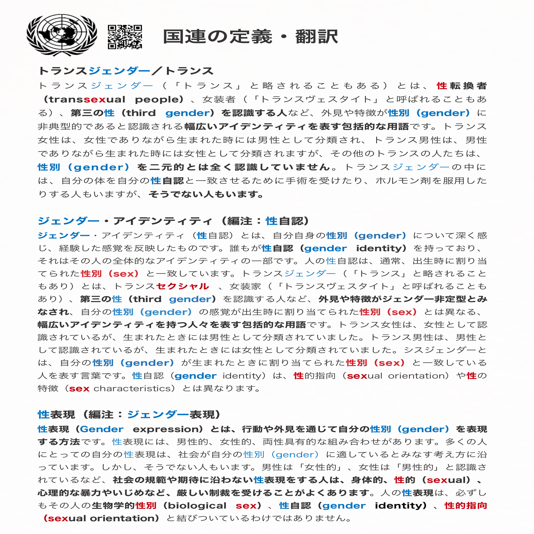 翻訳:🇺🇳国連による「トランスジェンダー」の定義