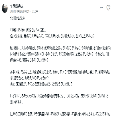 まあ表に出る以上他人から勝手に"郵便的誤配","脱構築","再解釈","二次創作"されるのは仕方がない側面もありますが。