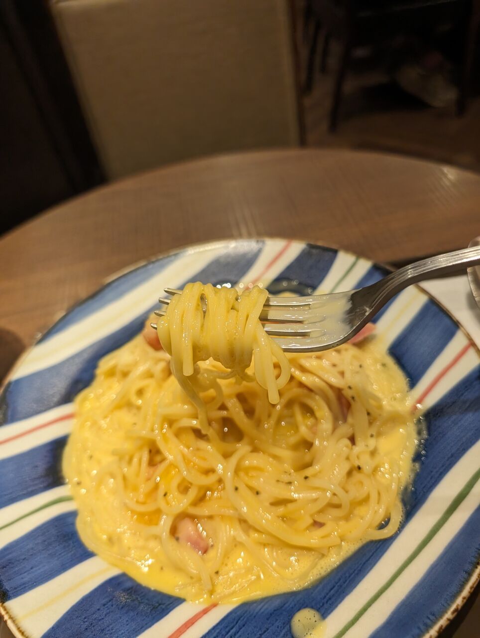 今日の朝ご飯は自分で親子丼作ったけど昼ご飯はサンマルクの期間限定のカルボナーラ食べた🩷