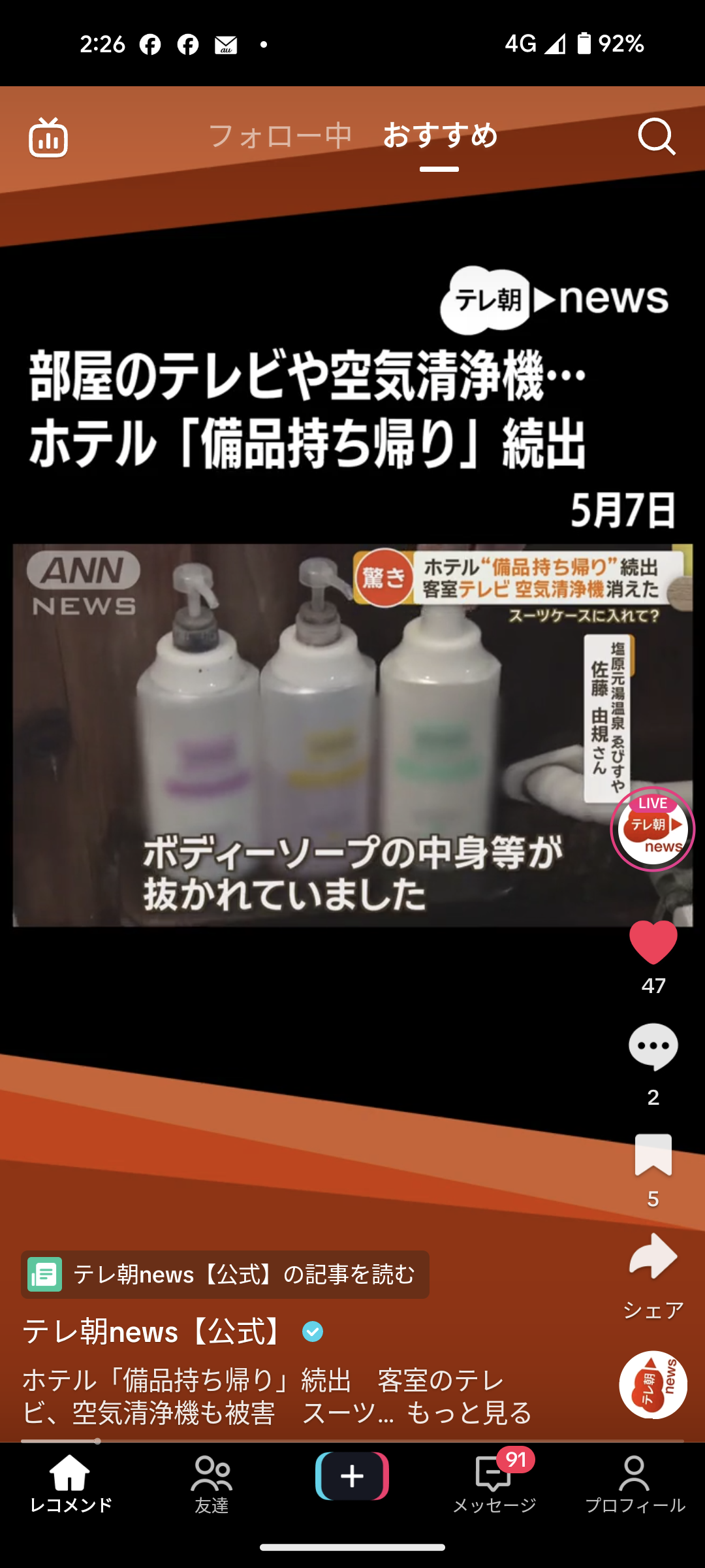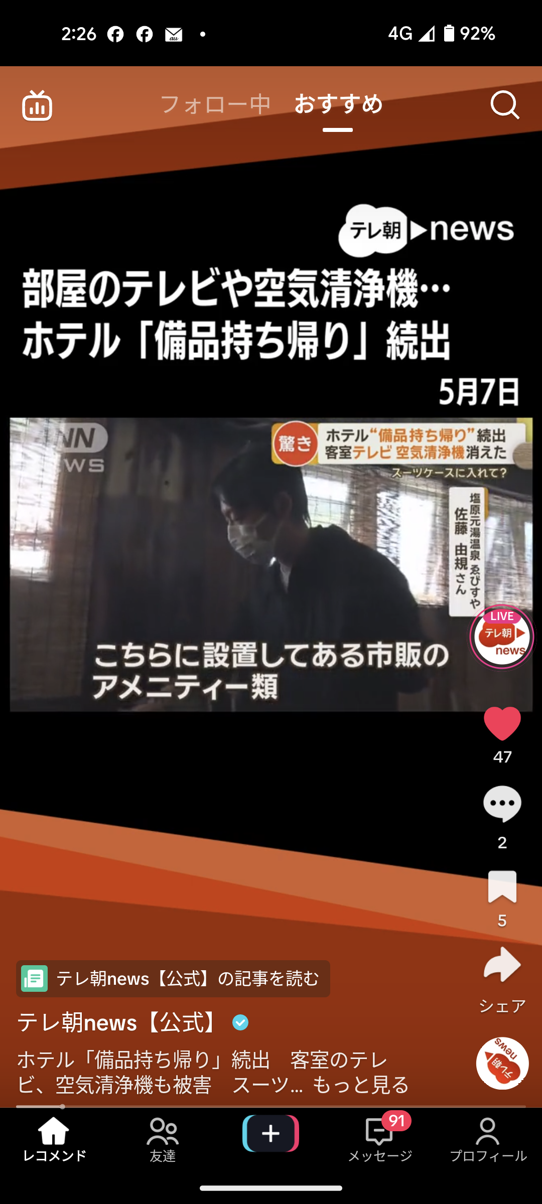 備品持ち帰りとかテレビでやってるけどやってる本人は宿泊費払ってるから悪いことしてる意識がないんだよ🥹