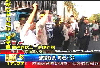 綠營支持者:「司法不公,聲援縣長!司法不公,聲援縣長!」