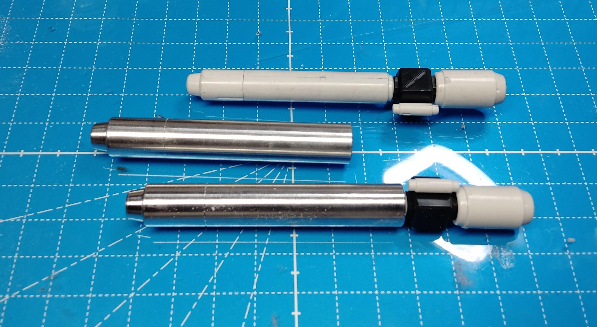 腕部:上腕で2mm延長、前腕の青い六角形ユニットで切断しスライドを仕込む