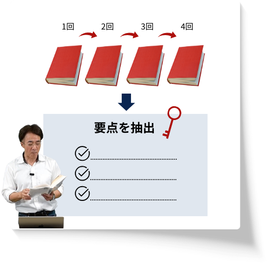 通常、読むだけで3時間はかかる大量の情報の中から、読書教育の第一人者が、最低4回は書籍を読み込み、あなたの代わりに本の要点を抽出し、整理します。