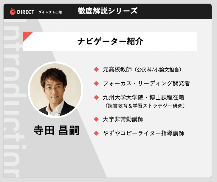 株式会社J-エデュケーション代表。10万部のベストセラー書籍『フォーカス・リーディング』の著者。