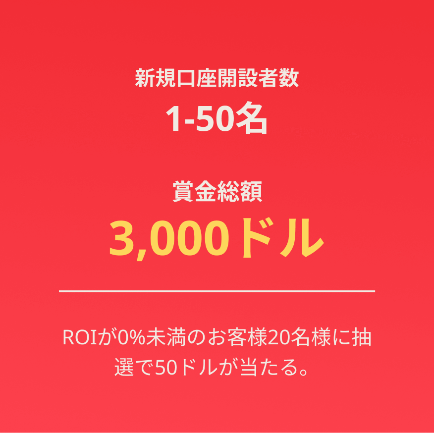 更にROIが0%未満のお客様20名様に抽選で50ドルが当たります(総額1,000ドル)。