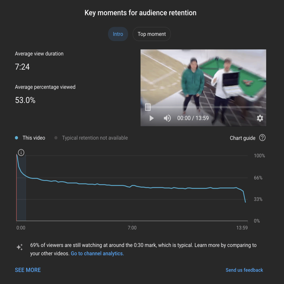 この動画では、最初の1分間で2,100万人の視聴者を失っているということです(ただ、この数字は他のチャンネルと比べればだいぶマシなほうです)。