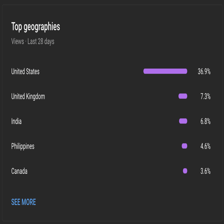 子供たちは母親と一緒に動画を視聴しているものの、私たちの女性視聴者はわずか30%に過ぎません。それでも、全体通せば、女性からの視聴回数は月間9桁あるわけですし、視聴者は世界中に存在しているには違いありません(完全に世界中というわけではなく、50%以上がアメリカとヨーロッパに集中していますが・・・)。