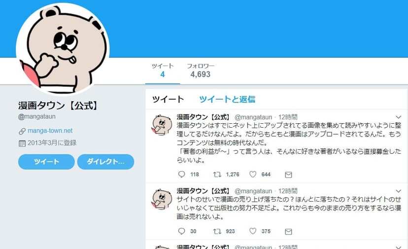 「著者の利益が〜」って言う人は、そんなに好きな著者がいるなら直接募金したらいいよ。— 漫画タウン【公式】 (@mangataun) April 12, 2018