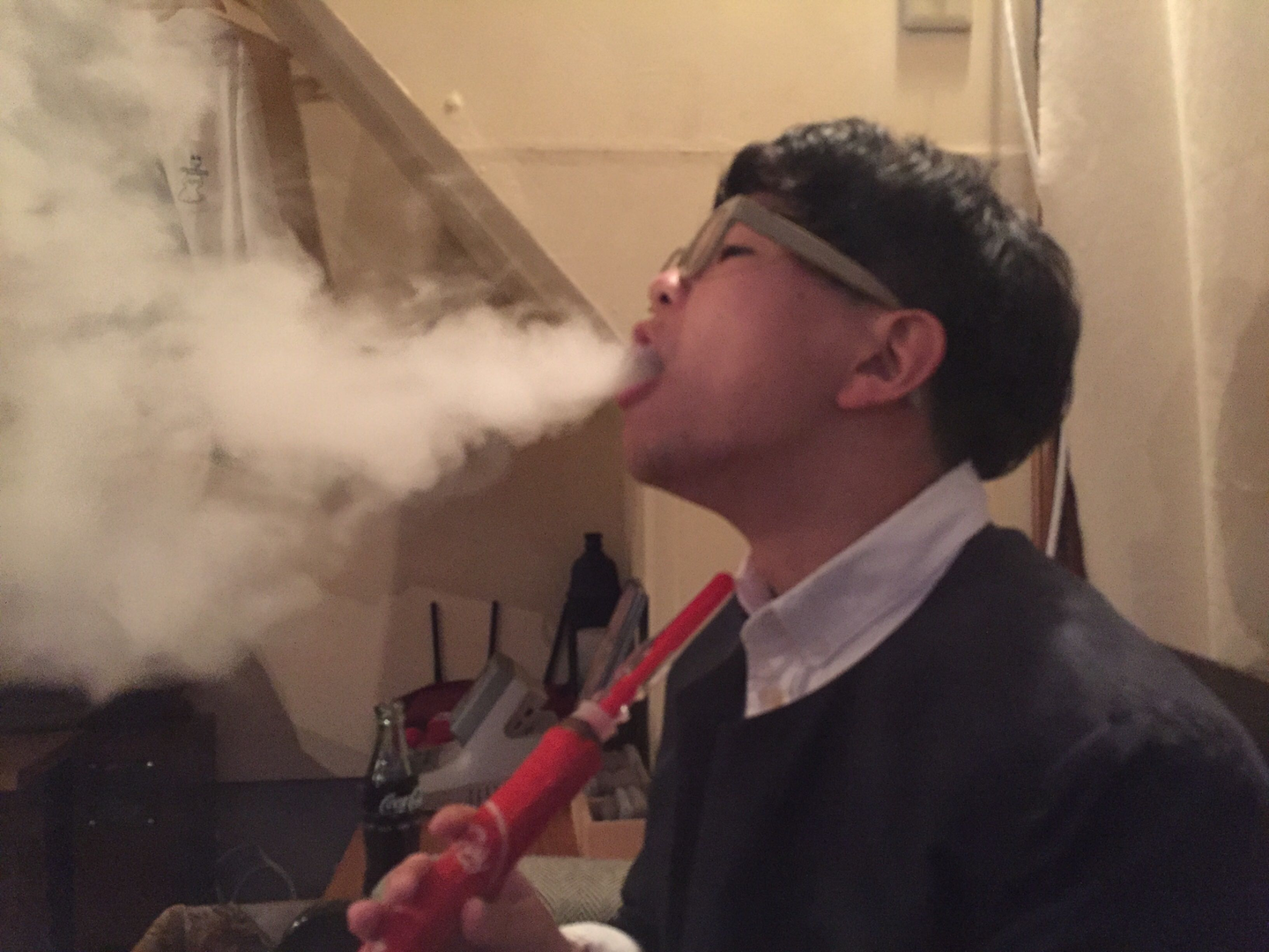 写真は、根岸さんが大好きな釣りと水たばこ(シーシャ)にしました。