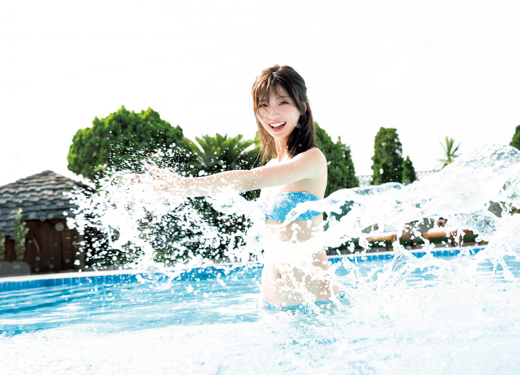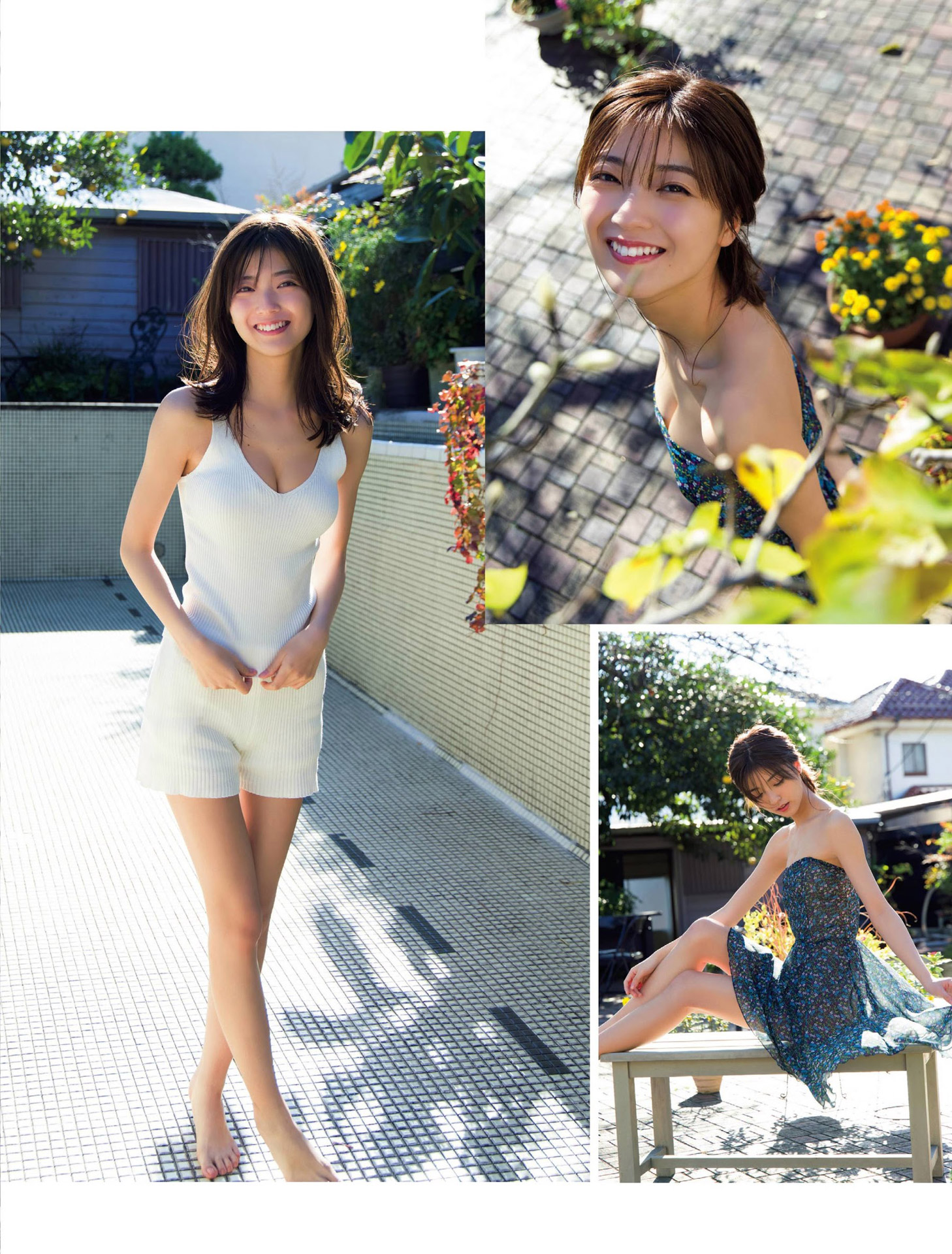 これまでのフレッシュなグラビアとは一転して大人モードに。インスタ美女御用達系の水着で美脚と美尻がより強調されています。