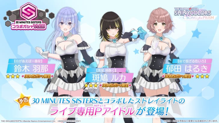 ※ 久川颯(長江里加),イヴ・サンタクロース(松永あかね),白雪千夜(関口理咲),神谷奈緒(松井恵理子),藤原肇(鈴木みのり),依田芳乃(高田憂希),赤城みりあ(黒沢ともよ),星輝子(松田颯水),小早川紗
