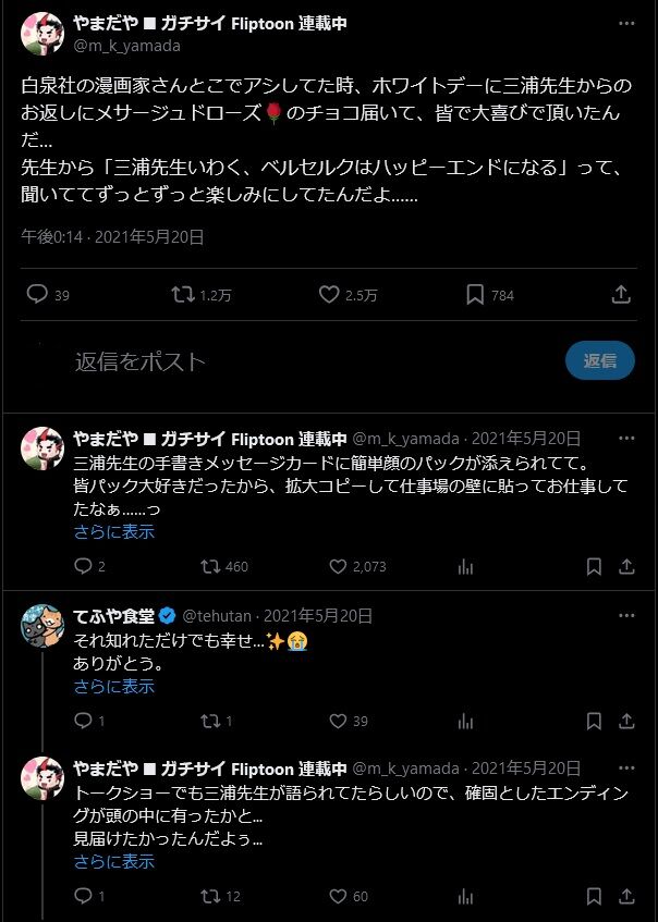 ■■■『ベルセルク』の作者逝去後。