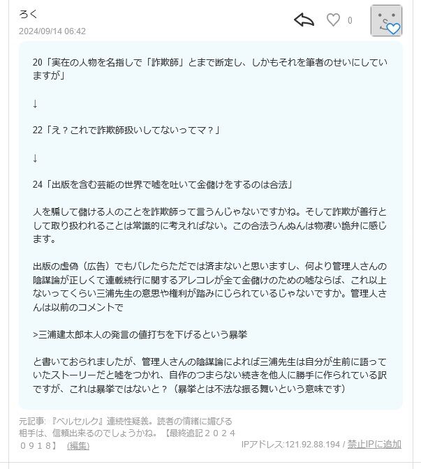 ■現在の『ベルセルク』関係者である事も否定しないですし、白泉社は放置して、攻撃成果だけを得るつもりなんですかね。