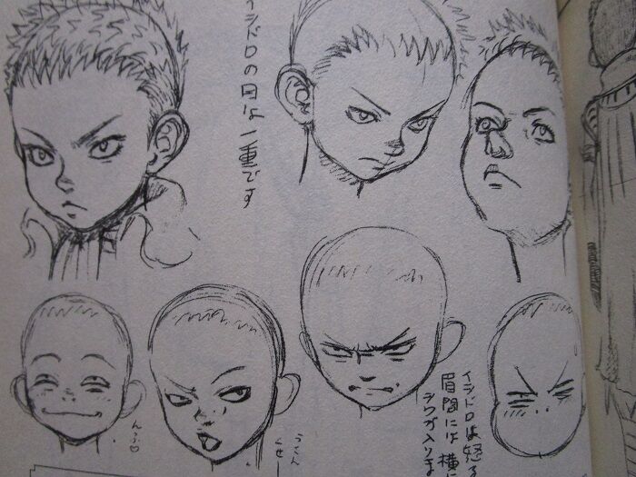 …もっと線がシャープで立体感があり、頭蓋骨の形状を意識し、鎖骨や胸鎖乳突筋を強調気味に首の構造を描き、眉は眼窩上部に位置させ、鼻梁は描き方自体が異なり、キャラの特徴が最も出る瞳もきちんと描いていますね。「落書き」とはいえ、こうも画力や描き方そのものに違いが出るものでしょうか。
