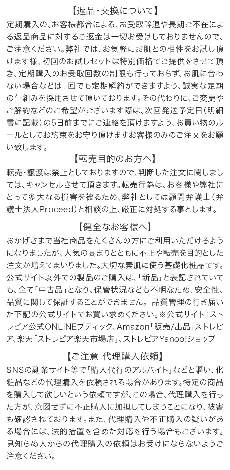 コスメおたくで、色々とたくさん注文している中でストレピアみつけました。電話した時、スタッフさんの説明に聞きほれました。どこの会社もこんなに詳しくわかりやすく丁寧な人はいません。 ※個人の感想です。